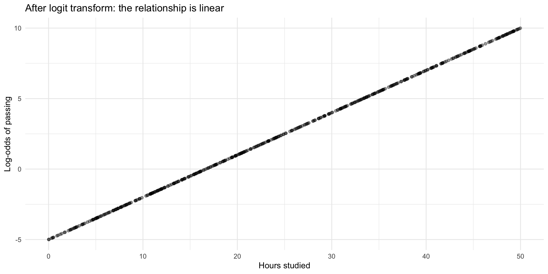 Let’s plot the log-odds against hours studied aaaaaaand….